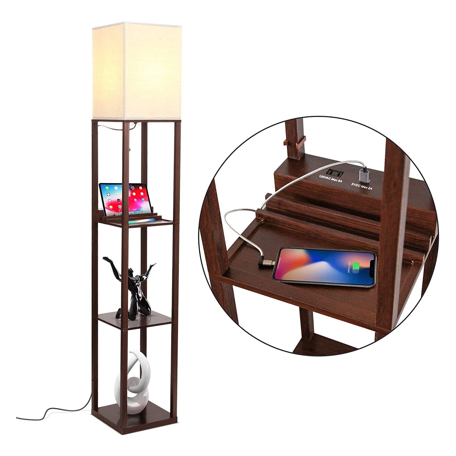 ✅ free shipping on many items! Include decor items as well as devices. This round shelf lamp ( available on hayneedle, $75 ) features three spaces for storing objects, and there's ample height in between each tier for storing form meets function in this chic lamp by adesso ( $270.99 and available at bed bath & beyond ). Brightech maxwell standing tower floor lamp with shelves and usb port, brown. Featuring both usb and ac adapter, this is a convenient floor lamp that allows for easy charging of your devices. The shelf floor lamps are known to be very convenient and flexible thanks to the excellent illumination and versatile designs. The floor lamp's height adjusts from 52 to 62. There are best 5 options of floor lamp with usb ports to brighten your room while charging your electric device. Garwarm led shelf floor lamp. The floor lamp is a metal construction with satin steel finish. 9 watts led bulb included. This led shelf floor lamp with usb port is perfect for placing everything, including your phone and tablet. Charging ports and pulling switch: