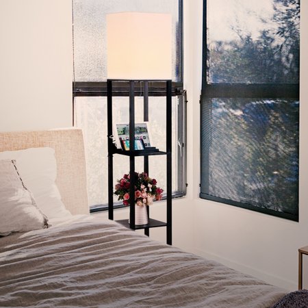 The floor lamp's height adjusts from 52 to 62. The floor lamp also features two usb ports on the. Simple designs floor lamp etagere organizer storage shelf with linen shade. Tomons lp03006 floor lamp, led standing lamps with remote control and adjustable dimmable bulb, tall industrial arc reading light with hanging fabric lampshade, for living rooms, bedrooms. Metal floor lamp with storage shelves and linen shade in dark wood.